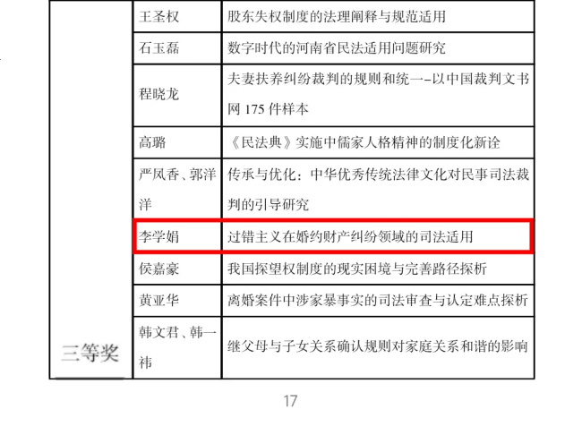 10月23日,2025年河南省法学会民法学研究会年会优秀论文获奖情况公示。其中,由鹤壁市山城区人民法院干警李学娟同志撰写的论文《过错主义在婚约财产纠纷领域的司法适用》荣获三等奖!